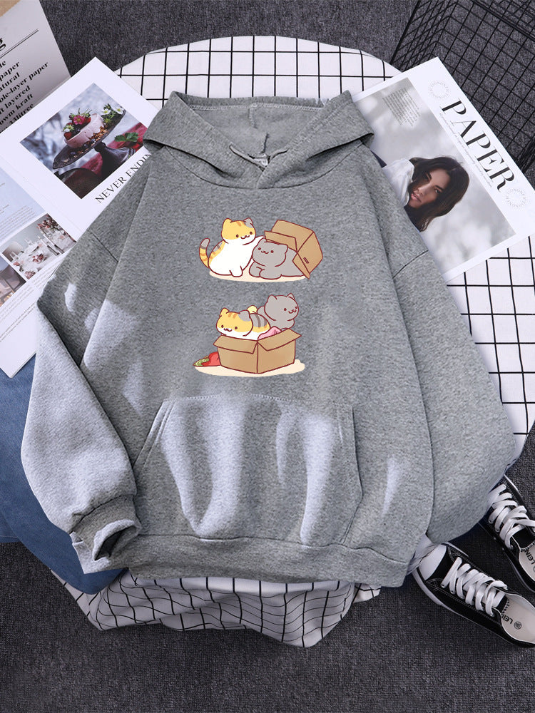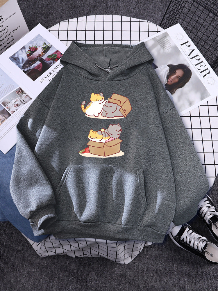 Two cute cats playing hide and seek in carto