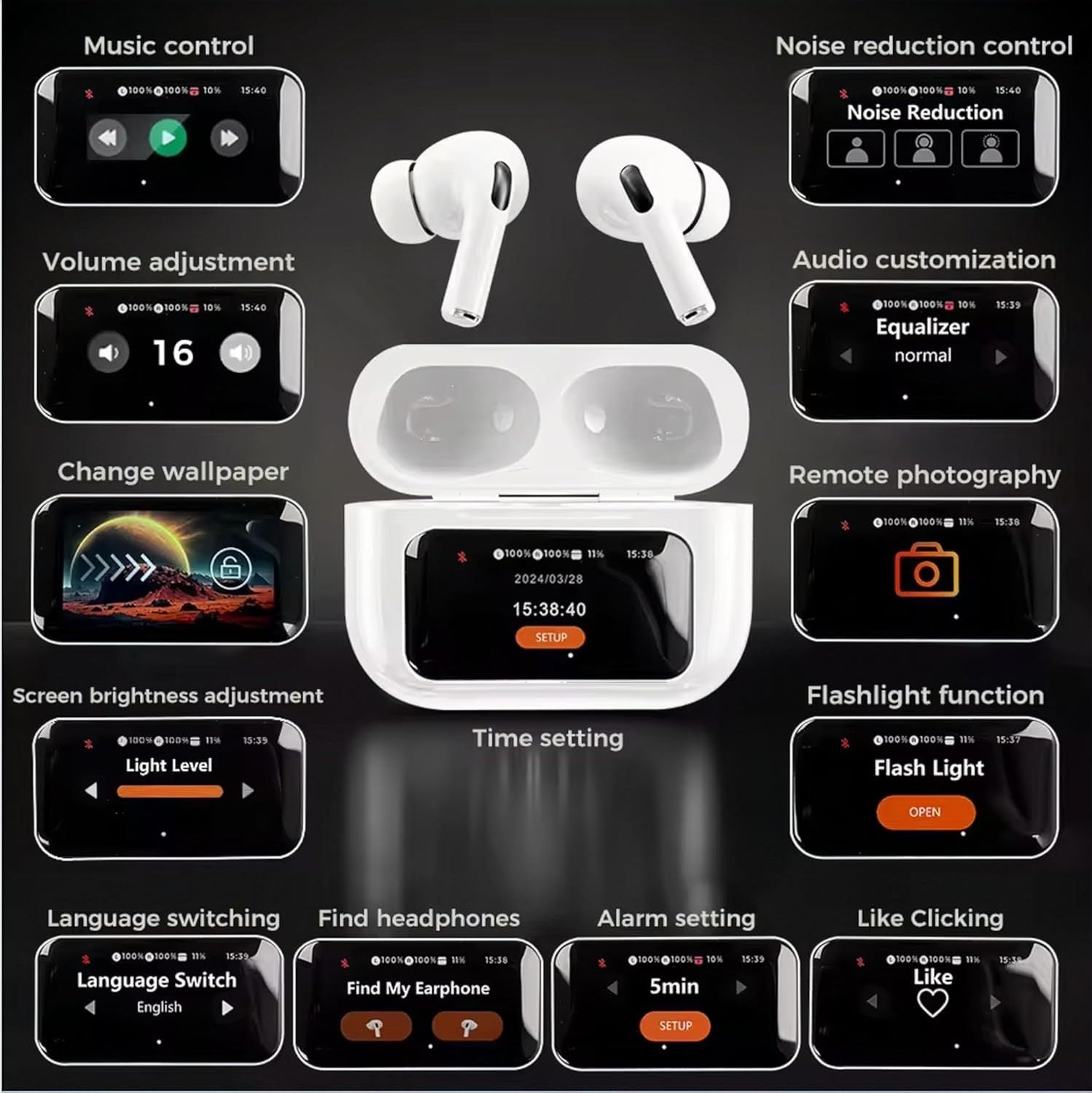 Wireless Earbuds Bluetooth 5.3 - ENC Noise Cancelling In-Ear Earbuds With Wireless Charging Case LED Display Deep Bass Earphones Headset With Built-in Mic Fifth Generation